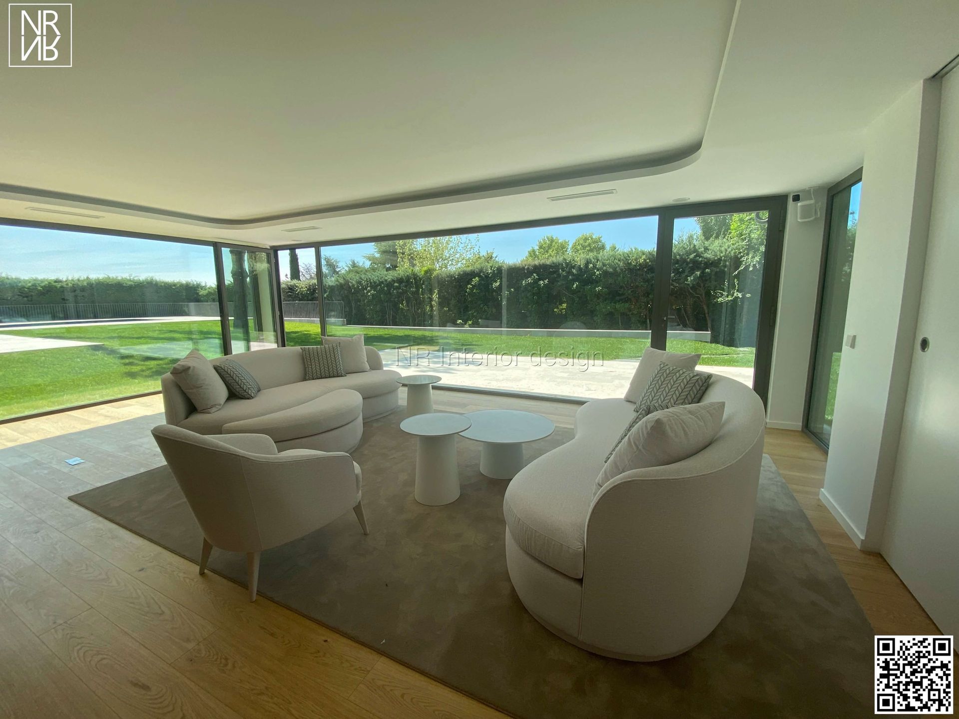 Im Gemeinschaftsbereich schlugen sie rundere und exklusivere Möbel vor und brachen damit mit der kantigen Ästhetik des Anwesens. So entstand ein gemütlicher Bereich, der den perfekten Rahmen für Familientreffen bietet.