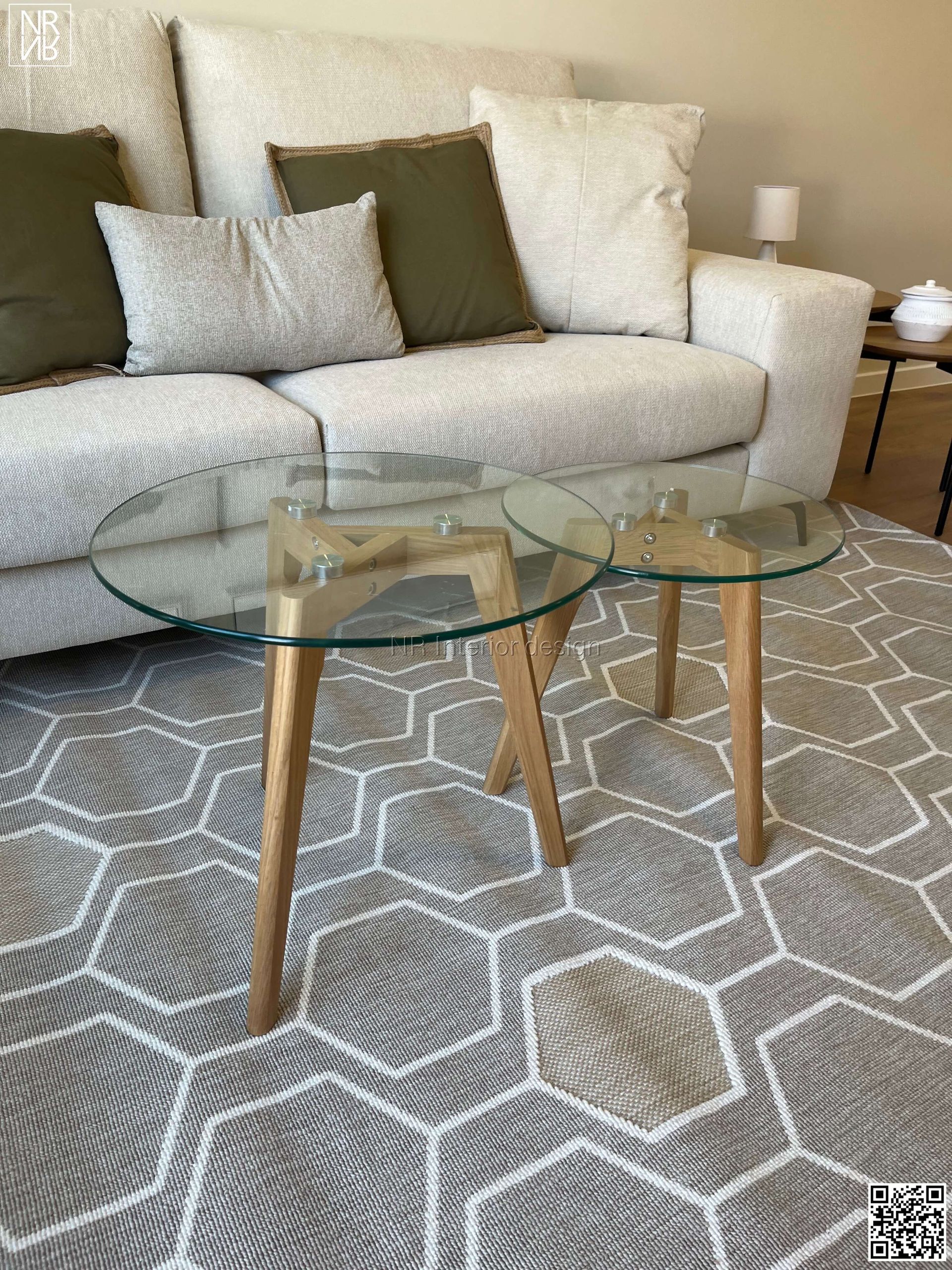 In one of the bedrooms, a carpet was made to overcome the small column and place the bed close to the corner, thus gaining more space throughout the bedroom area.