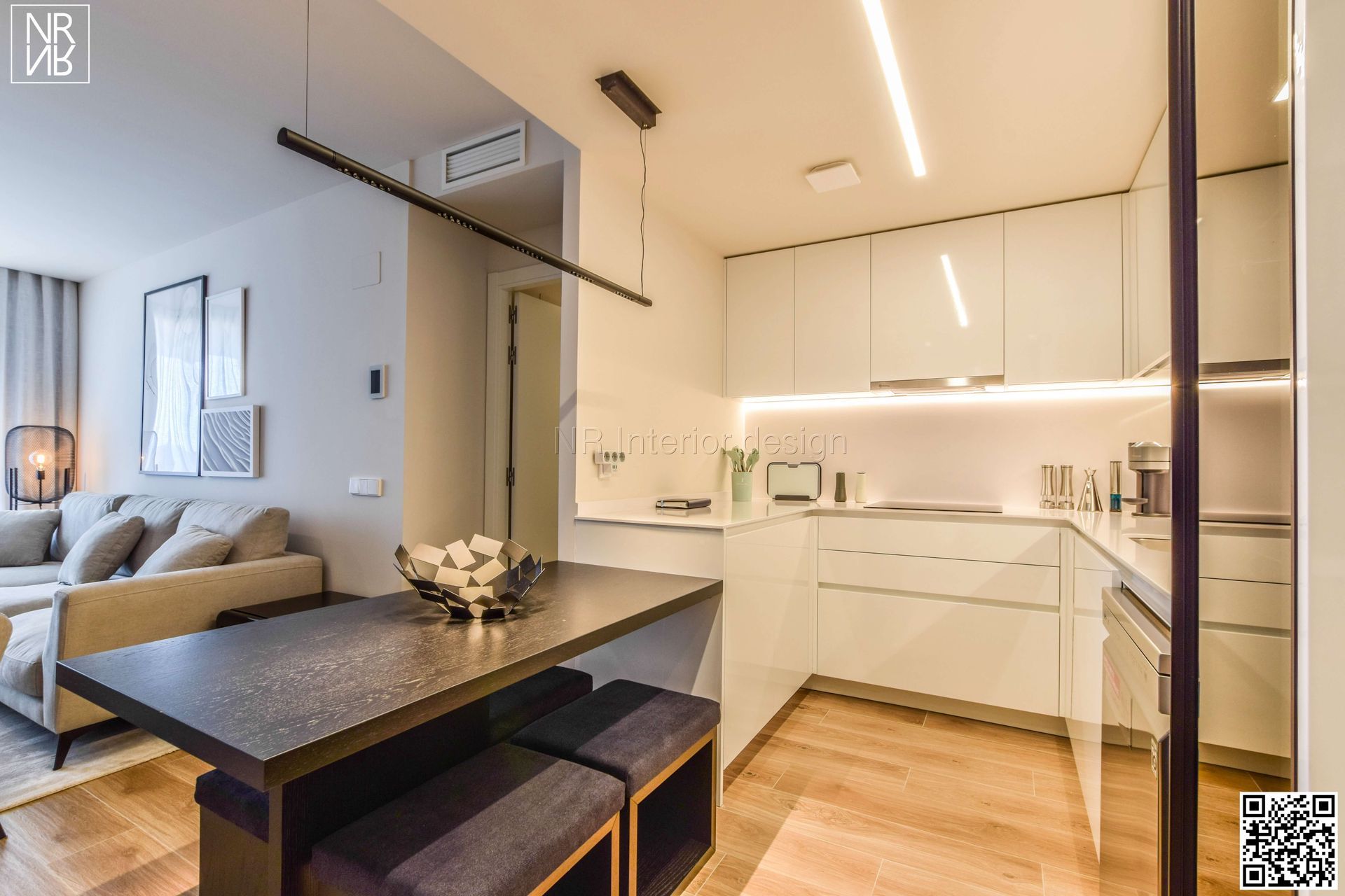 A two-bedroom home fully decorated with designs tailored to the space. Custom-made furniture with mirror finishes provides visual space. We chose tan wood tones and gray upholstery, achieving elegance with a carefully curated aesthetic. This project was delivered turnkey, to the client.In addition to the furniture, we asked for everything necessary to live in your home, from kitchenware, bathroom accessories, linen, bed linen, bath linen, and much more.
