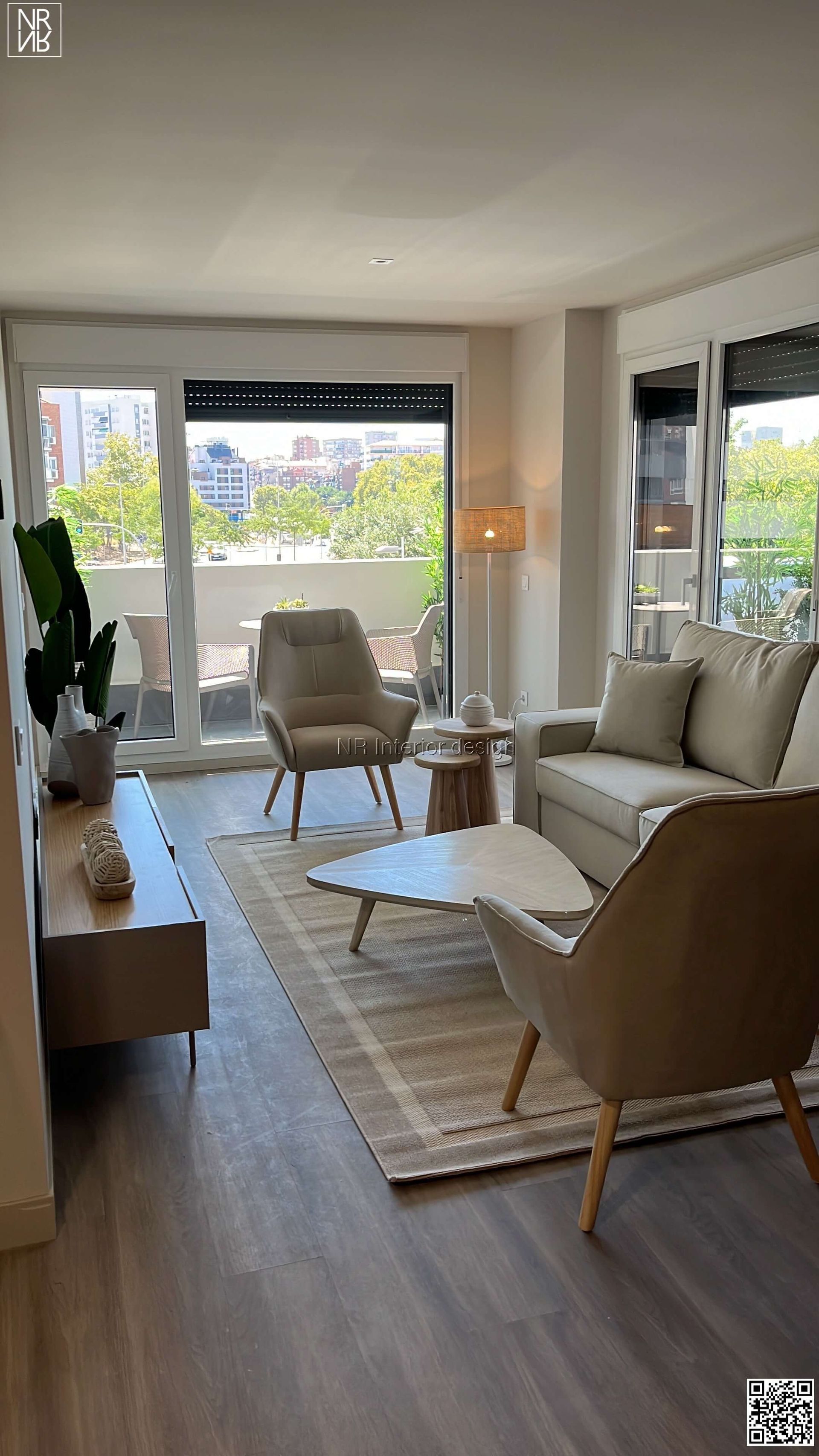 Furniture, lighting, curtains and decoration.