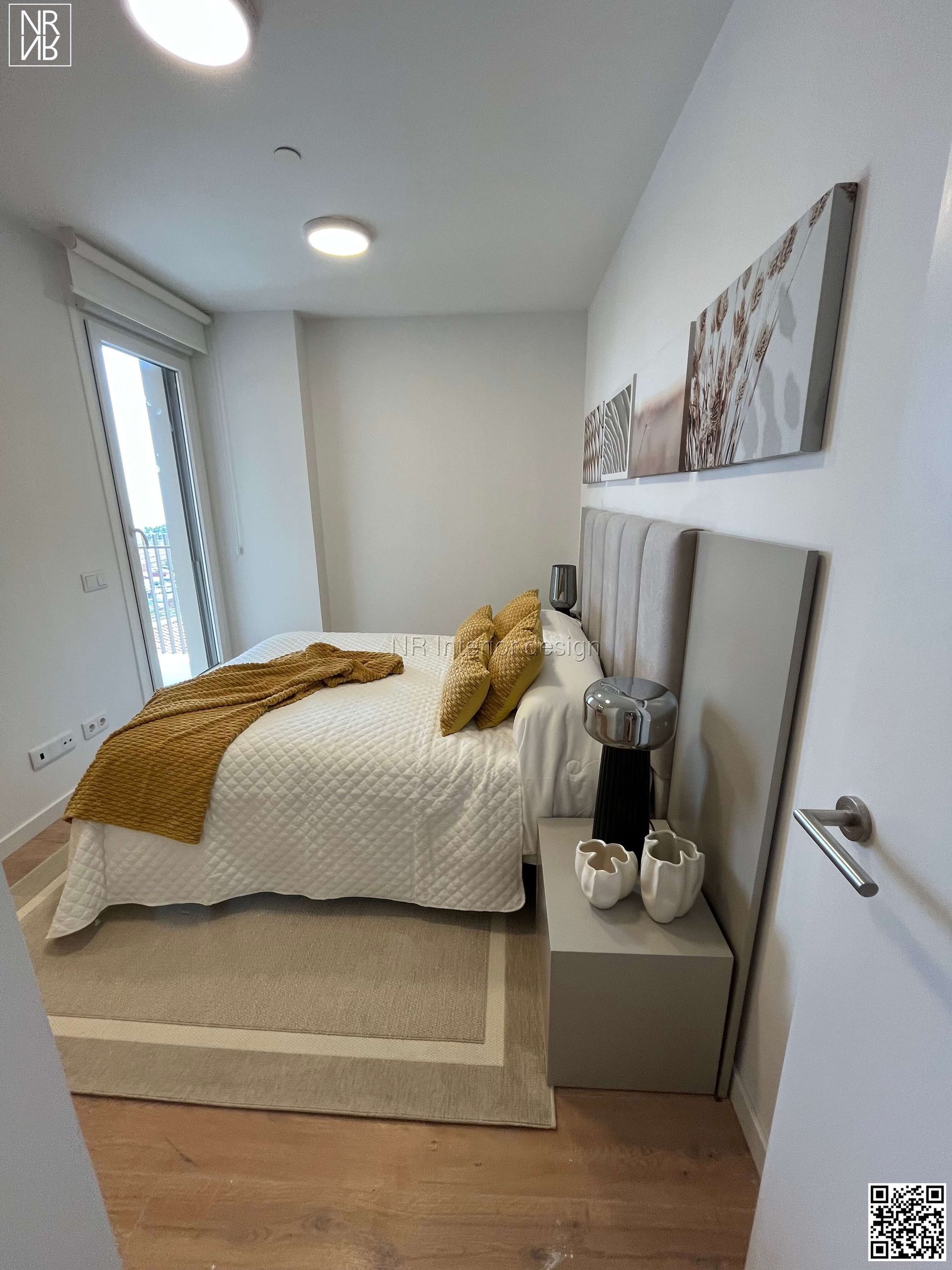 The living room with its relaxed sofa and armchair design invites us to read a book and spend the dayfamily time. The slatted wood of the living room furniture decorates the wall andintegrates the living room area with the dining room.In the master bedroom, an upholstered headboard with lacquered wings and alarge carpet, achieving a maximizing effect.The secondary bedroom was optimized with under-bed drawers and a desk.flown without interfering with the steps or access to the terrace.The terraces are very pleasant not only for their views but also for the very nice furniture.comfortable in green tones with life-giving plants.