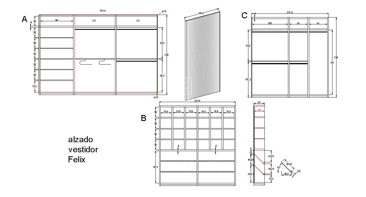 Dans un premier temps, pour des projets plus personnalisés, nous réalisons une étude avec prises de mesures et développement pour créer la réalité d'un futur projet. Nous créons les rendus en utilisant les textures choisies et les mesures réelles afin que l'ensemble développé ressemble le plus possible à l'idée que nous souhaitons capturer. C'est pourquoi nous parvenons à être le plus fidèle possible, en garantissant un résultat final réussi, que ce soit pour un dressing, un salon complet ou tout environnement nécessitant un aménagement précis.