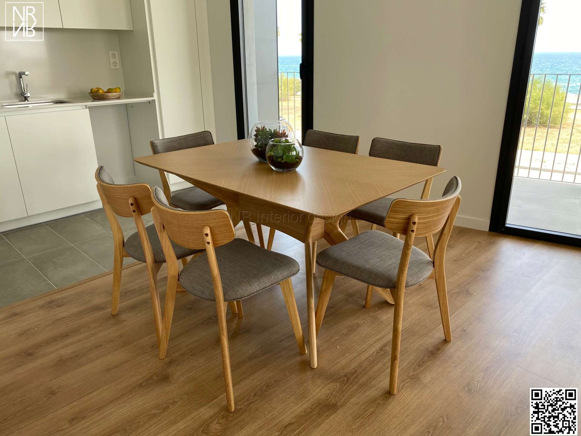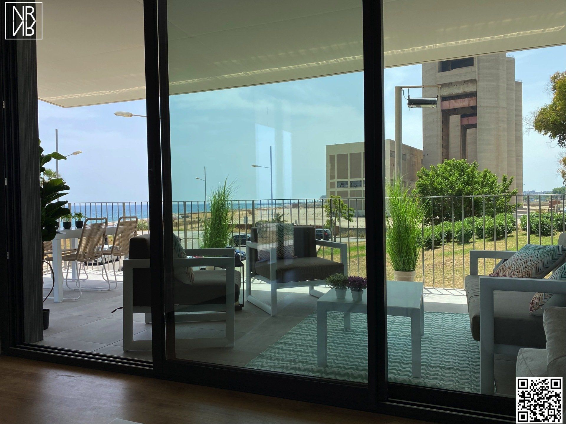 Cet appartement spacieux de quatre chambres avec vue sur la mer met en valeur le style de vie de la plage, ainsi que la chaleur et la détente de la mer. Des tons naturels comme le sable de plage, le turquoise et les bleus comme l'eau de mer, ainsi que le bois de chêne naturel, harmonisent ce grand appartement, offrant des vues à travers les grandes fenêtres. La grande terrasse rend notre espace continu avec l'extérieur et nous invite à être en paix et immergés dans l'harmonie que cet environnement nous transmet toujours.