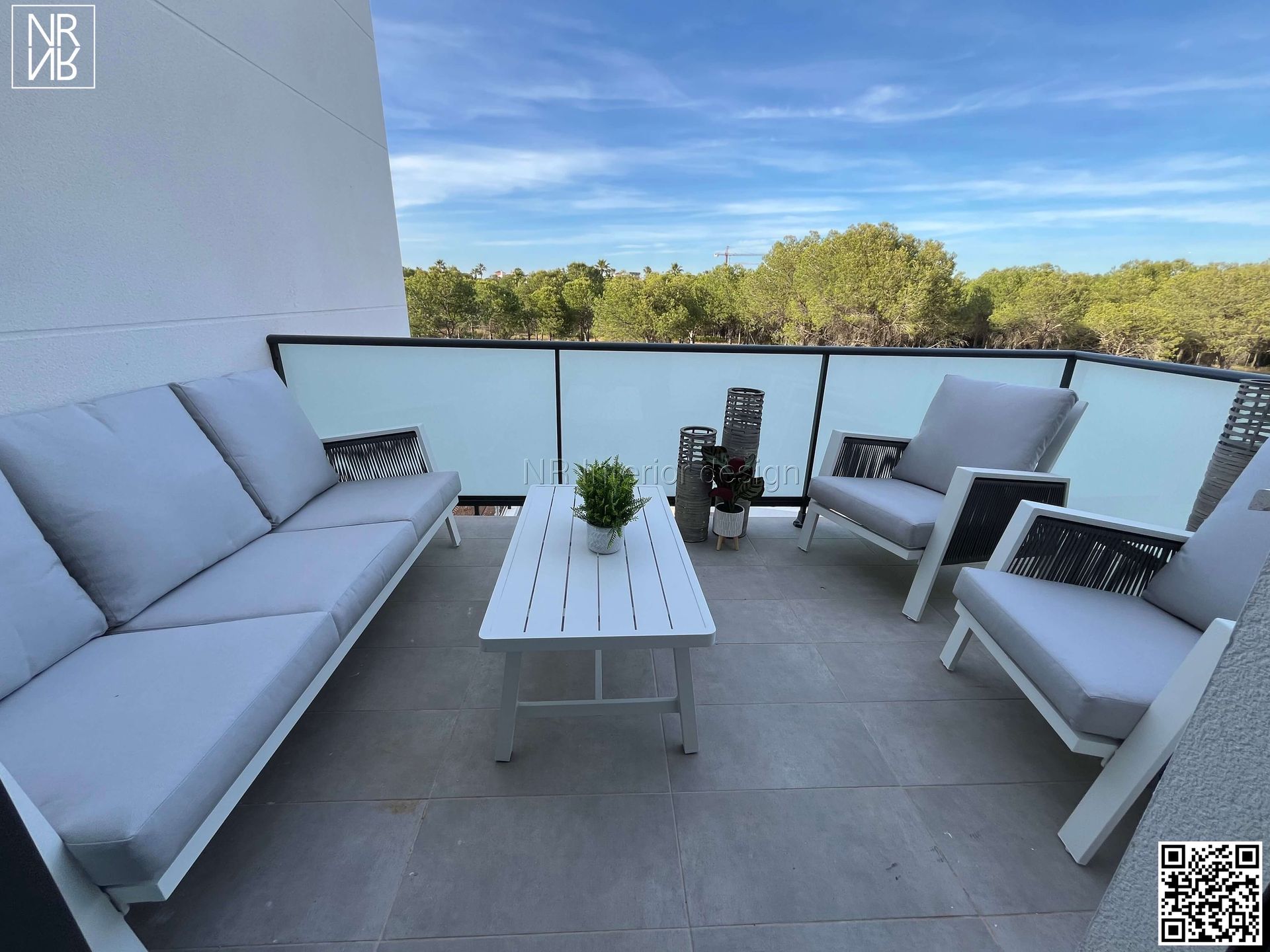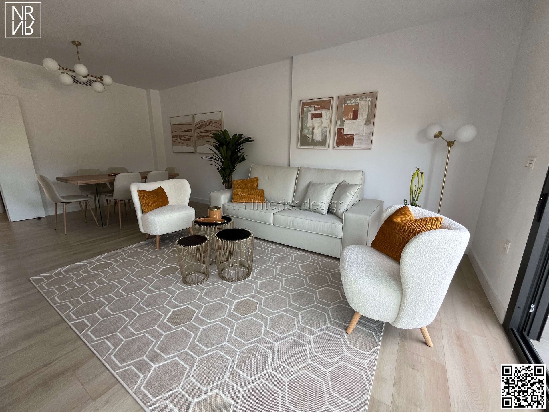 Mobilier, luminaires, rideaux et décoration.