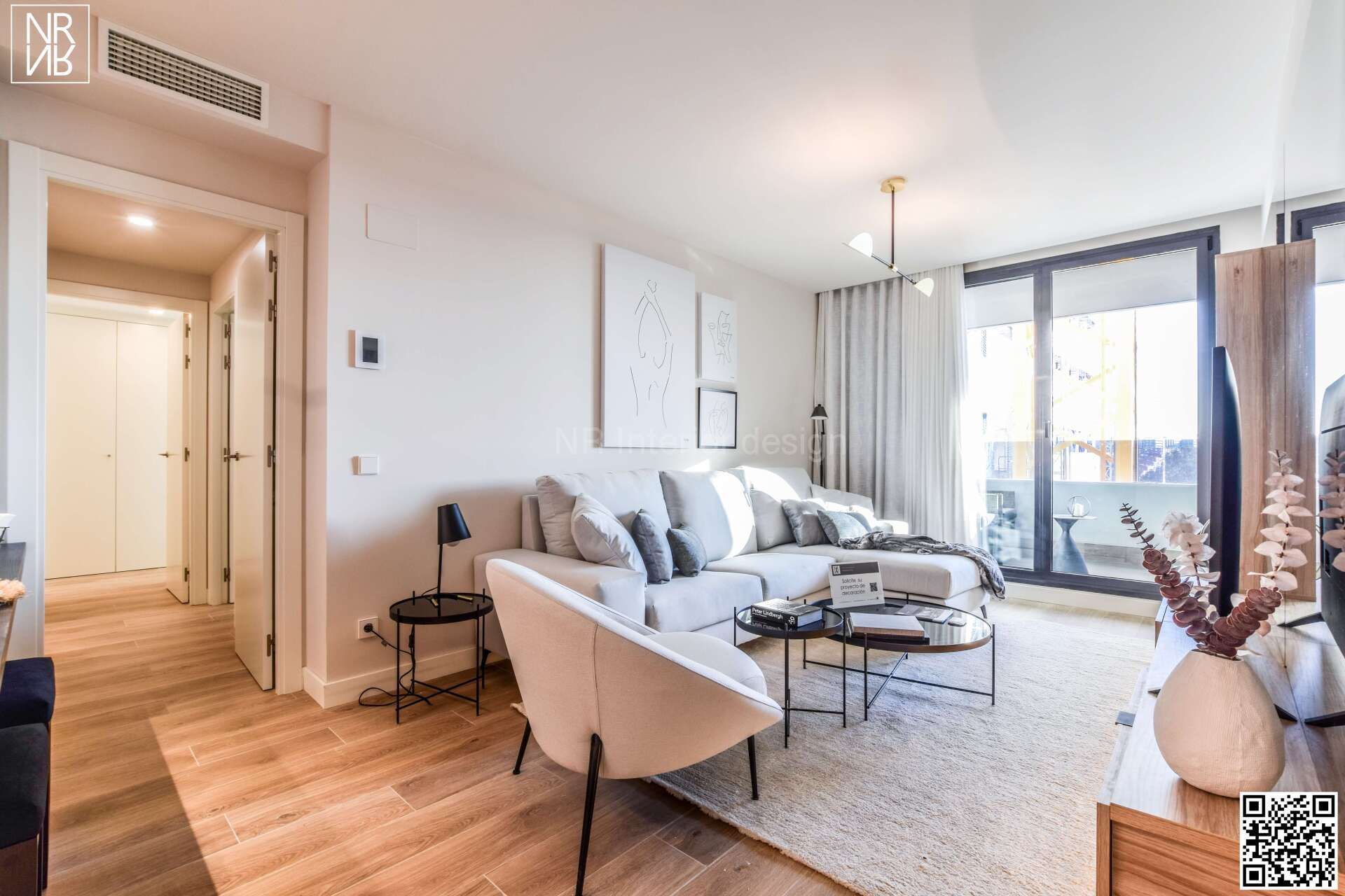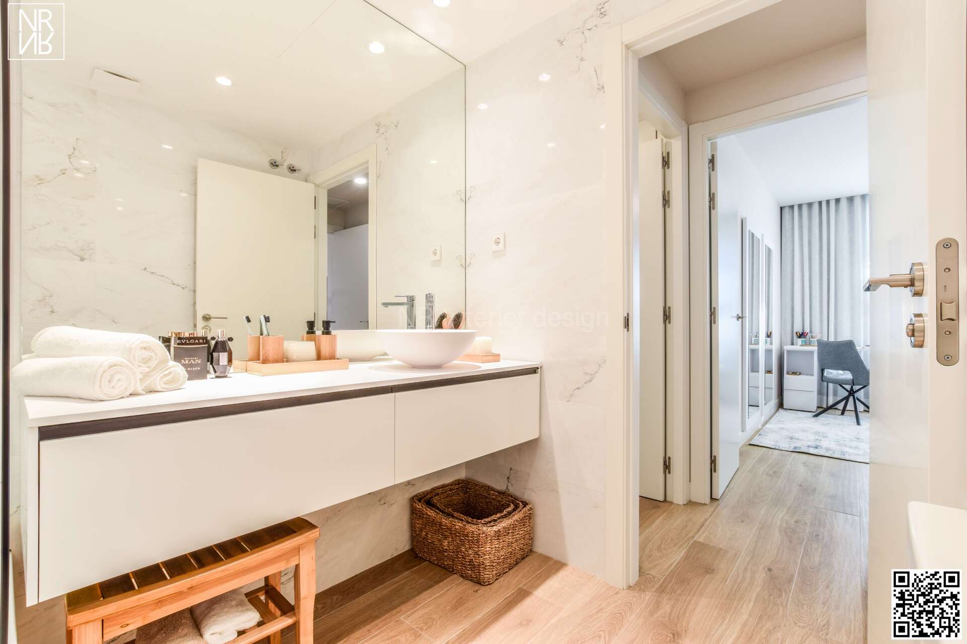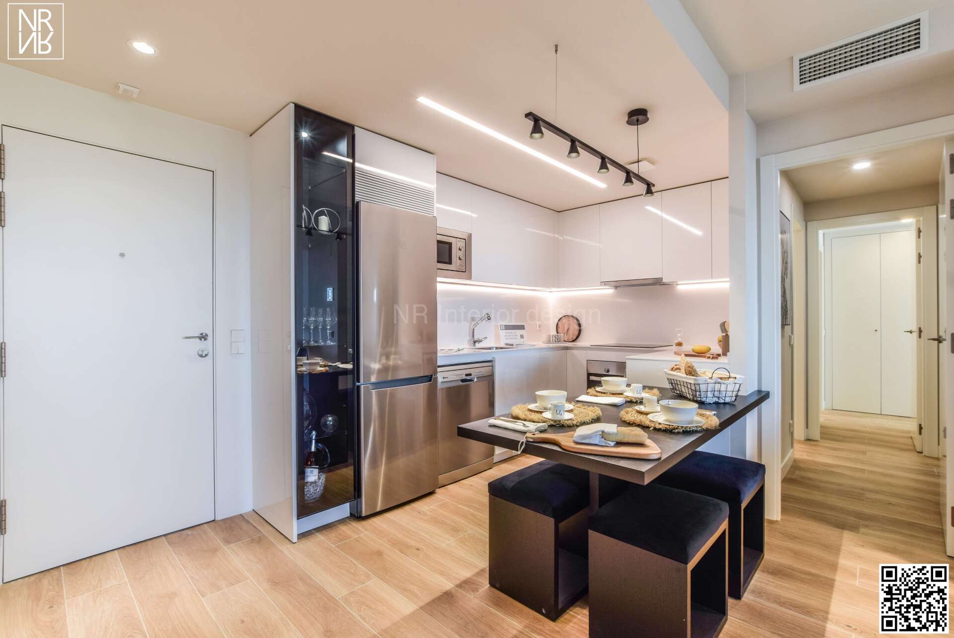 Spettacolare appartamento con due camere da letto situato in un grattacielo di Madrid. Abbiamo deciso di puntare su design urbani dallo stile moderno ed elegante, combinando effetti specchio con mobili dalle linee rette e retroilluminazione per creare spazi visivamente più accattivanti e valorizzare gli ambienti. Il risultato finale conferisce uniformità in ogni ambiente, realizzando un interno in cui ogni elemento si incastra perfettamente.