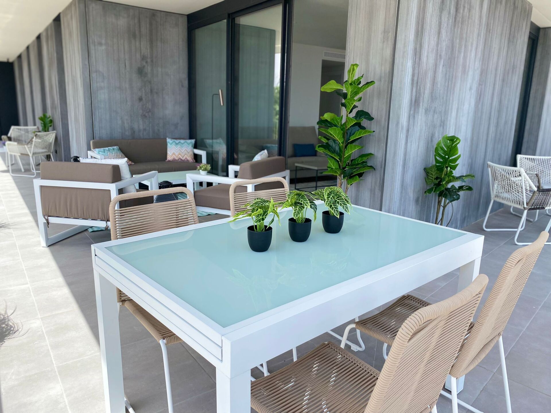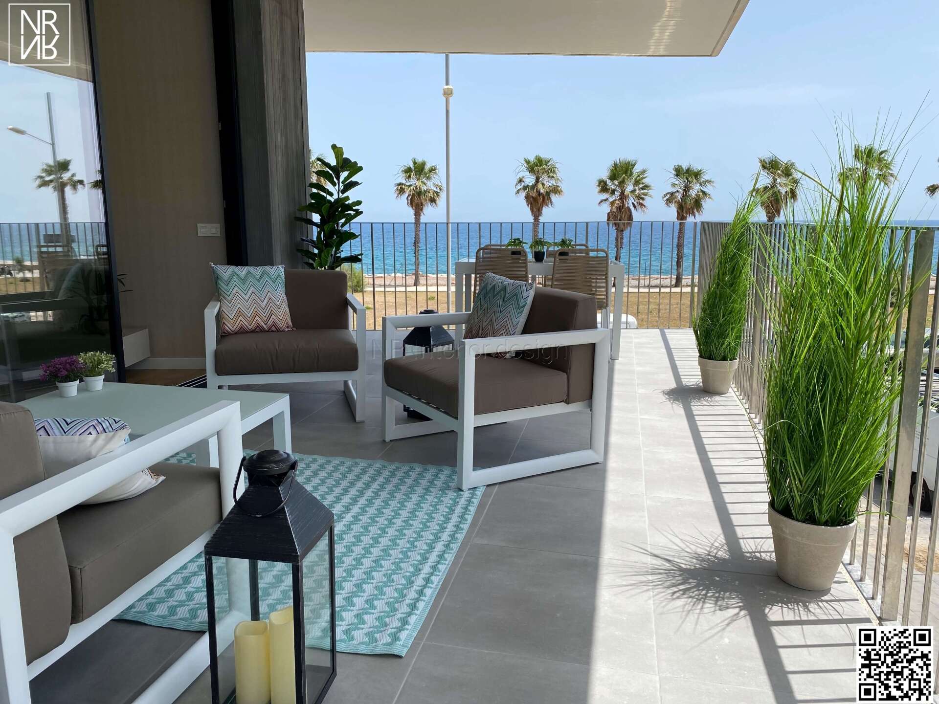 En este espacioso apartamento de 4 dormitorios con vistas al mar se proyectó el life style que nos brinda la playa así como la calidez y el relax del mar. Tonos naturales como la arena de la playa, turquesas y azules como el agua del mar junto con la madera de roble natural armonizan este gran apartamento introduciendo las vistas por las grandes ventanas. La gran terraza hace que nuestro espacio esté en continuidad con el exterior y nos invita a estar paz y sumergidos en la armonía que siempre nos transmite este entorno