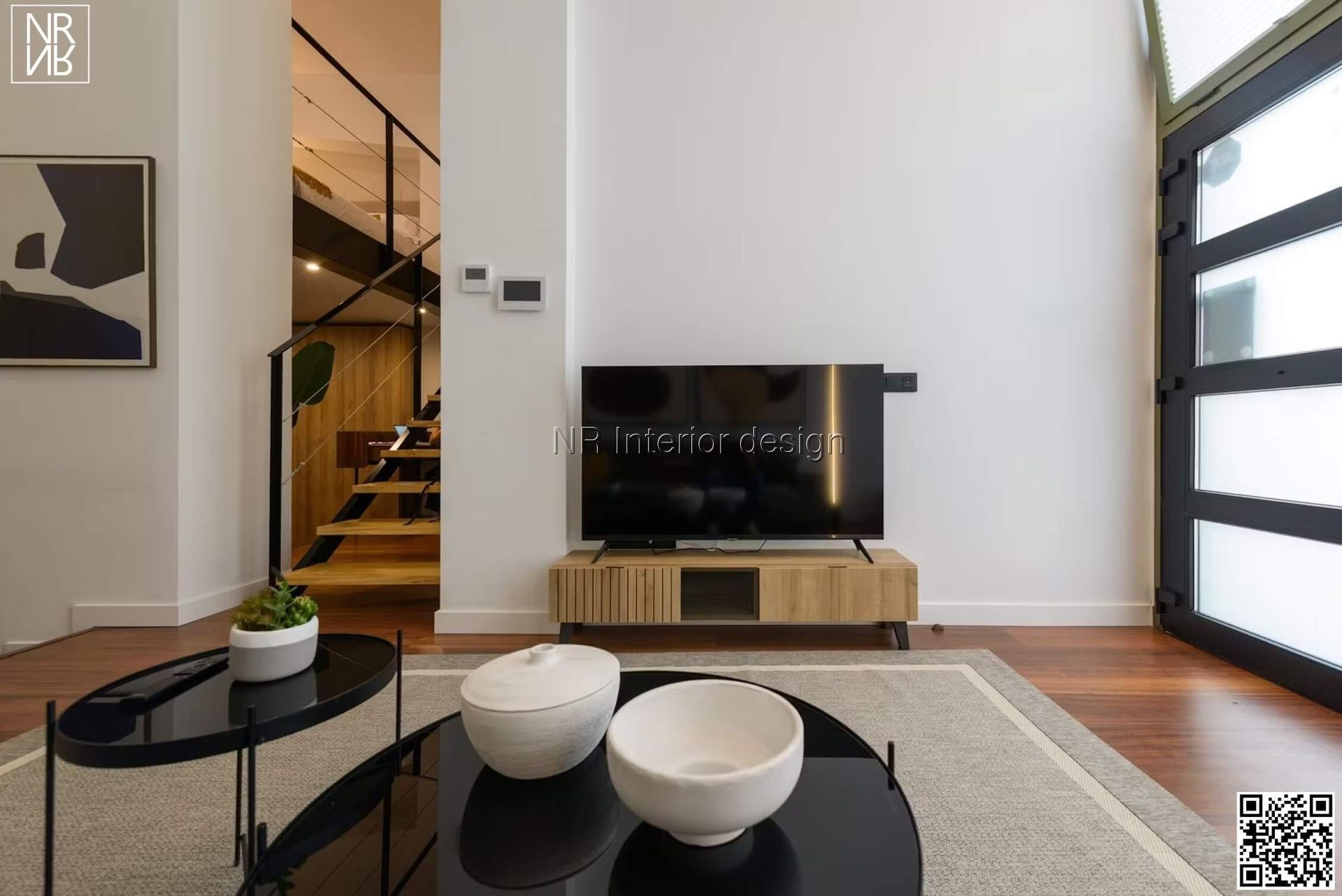 En ser anteriorment un local comercial, es va poder jugar amb la doble alçada dels sostres deixant una zona de nit a la part superior i la zona de dia i social a la part baixa.