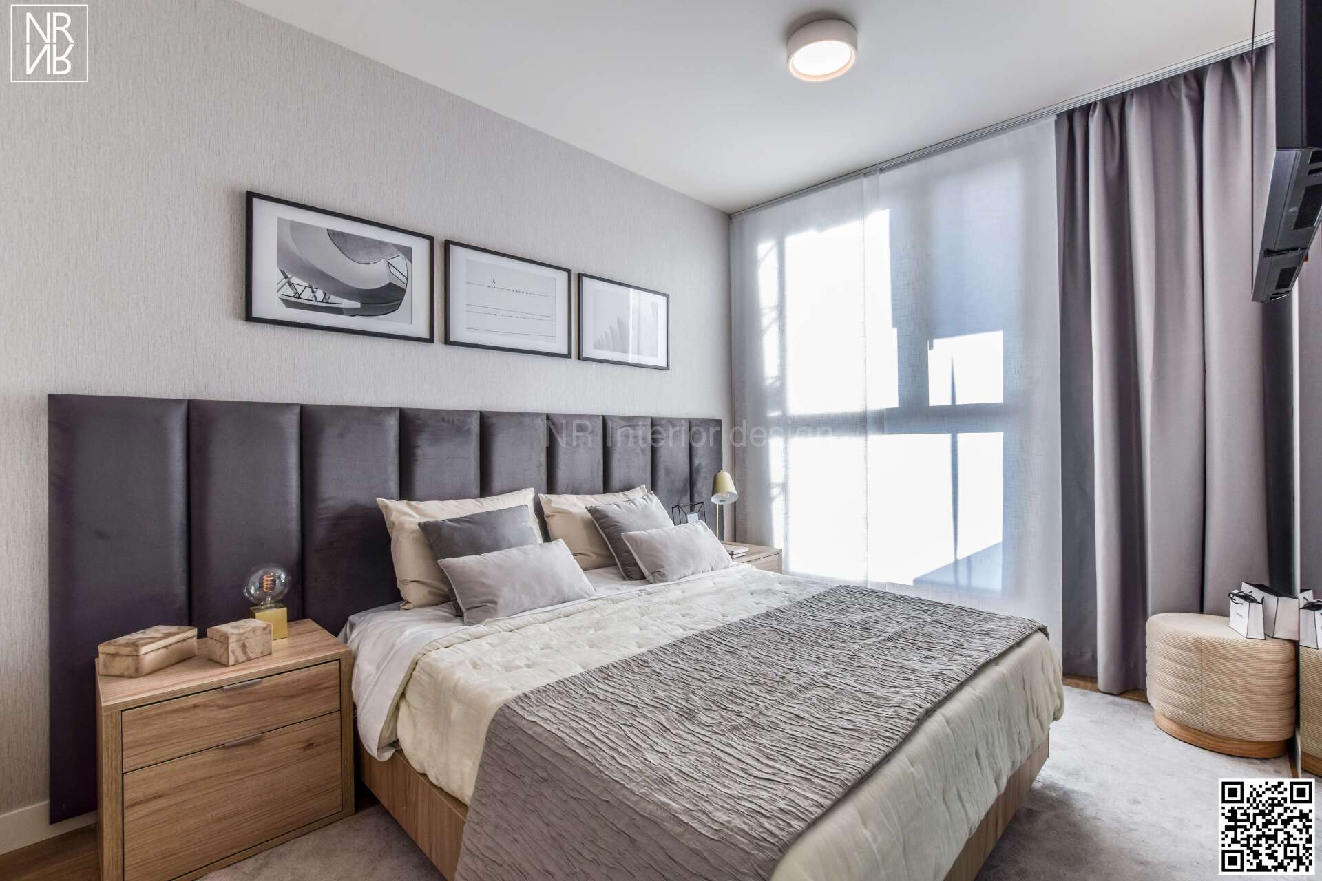 Disseny d´Interiors amb mobiliari personalitzat, cortines, paper de paret i elements decoratius.
